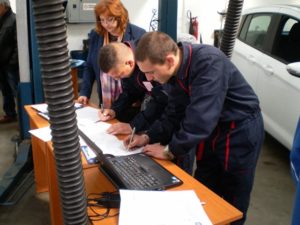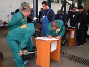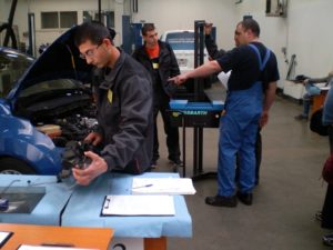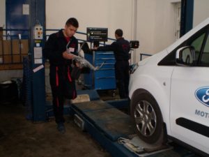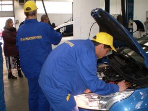 Теоретичните тестове и управлението на МПС бяха проведени в ПГ по транспорт, а практическата част на състезанието за автомонтьори се проведе в сервиз MOTO-PFOHE / Ford.
